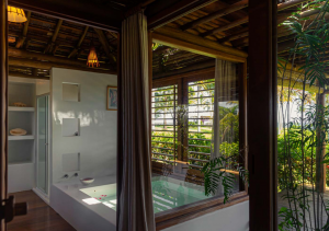 Estaremos acomodados em confortáveis e charmosos bungalows privativos pertencentes à antiga fazenda de coco, onde cada um poderá descansar, estar à vontade e desfrutar da rica e conservada flora.